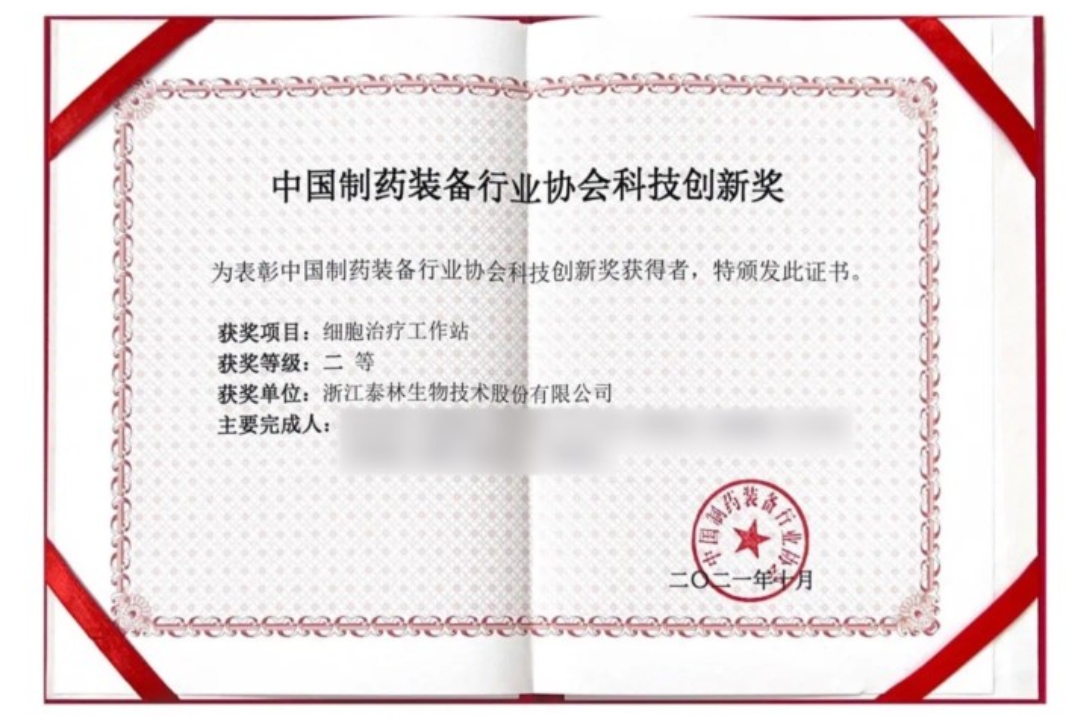 泰林生物榮獲2021中國制藥裝備行業(yè)協(xié)會科學(xué)技術(shù)創(chuàng)新獎